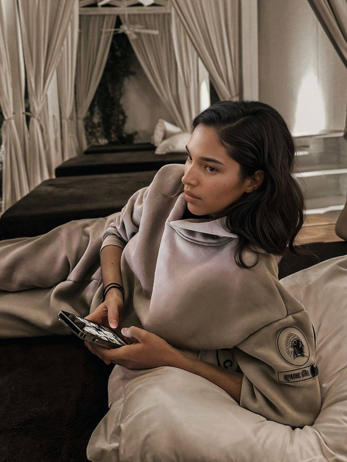Introducing the ICONIC HOODIE "DUBAI" by Apache Star - a masterpiece of functionality and style, designed to accompany you on your most daring explorations while exuding an aura of timeless elegance.